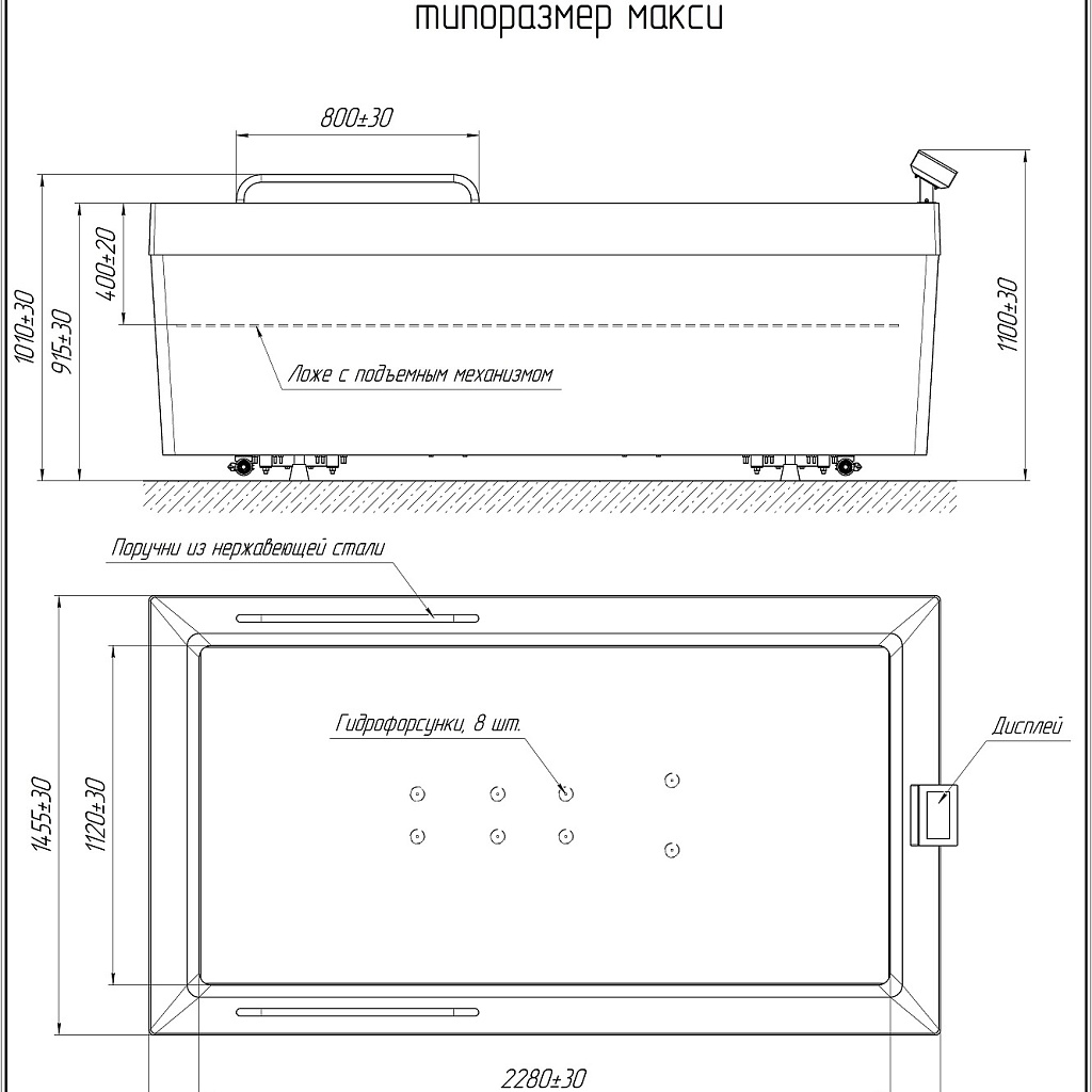 Размеры ванны (без учета дисплея и поручней) (ДхШхВ), мм | 2610х1455х915 |